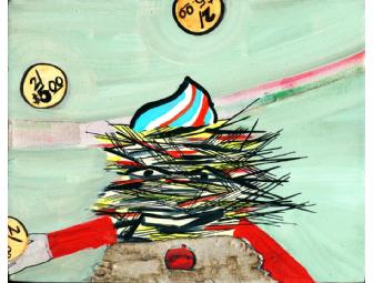 Erica Svec is a Brooklyn based artist who celebrates the energy and radiance in everyday objects: including trash, graffiti, the lost, the discarded and the spilled. All of these things are represented in her mixed media on canvas work "Untitled," 2002. Finding delight, beauty and mystery in the things that others cast off, Svec reassembles the seeming jumble into small still lives such as "Untitled" 2002, which she uses as the basis for larger painted compositions. Her work has been exhibited internationally—most recently at the Larissa Goldston gallery in New York City, where she is represented. The Whitney Museum of American Art recently acquired one of her prints for its collection.