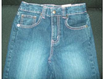 New Arizona blue jeans size 6x regular. Stitched in pink with pink sparkles on the bells of the jeans.