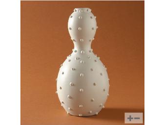 Jonathan Adler pottery begins its life in his Soho studio, where he and his team design and sculpt every prototype. This vase is produced by skilled artisans at the main workshop in Peru. They make molds from prototypes and then hand craft each piece from high-fired stoneware or porcelain. The Peruvian workshop was founded through Aid to Artisans, a non-profit organization that connects designers in America with artisans in developing countries to promote fair trade.