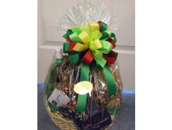 Ladies Golf Basket put together by the Gingerbread House. The basket includes golf accessories, wine, a shirt and visor from First Citizens Bank and various Ginger Bread House snacks.