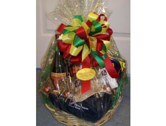 Mens Golf Basket put together by the Gingerbread House. The basket includes golf accessories, wine, a shirt and visor from First Citizens Bank and various Ginger Bread House snacks.