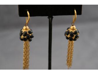 Beautiful Designer Ball and Tassel earrings by Kenneth Jay Lane. Pave enamel vermeil. Black and gold tone.