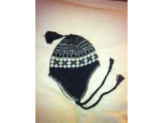 Peace sign design knit hat with ear flaps and pom pom on top. Twisted rope chin strap. Fleece lined to keep you warm and wind free. Great to wear for all cold outdoor activities and stylish enough to wear anywhere.