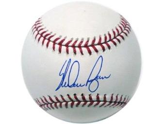 Baseball autographed by former Texas Ranger's pitcher and current part-owner, CEO, and team president Nolan Ryan.