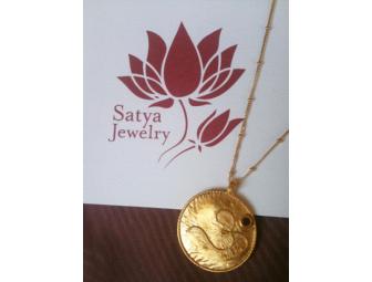 Blending spiritual symbols, healing gemstones and sacred meanings, Sayta Jewelry is created with grace, style and a global consciousness. This item is a 24-kt gold vermeil etched Om charm hanging from a red garnet necklace.