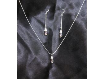 This gorgeous set is made with sterling silver, Swarovski crystals, and purple fresh-water pearls. The perfect set for any formal occasion.