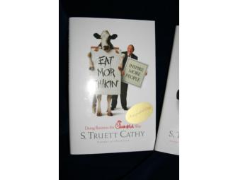 Eat Mor Chicken, Inspire More People by S. Truett Cathy, the well-known owner of Chick-fil-A. Truett Cathy has achieved success while living the life of a servant leader. His committment reaches far beyond the people who work and eat in his restaurants. In this book, Mr. Cathy challenges readers to focus on people and principles then good success will surely follow. Eat More Chickin Inspire More People, Doding Business the Chick-fil-A Way is autographed by S. Truett Cathy.