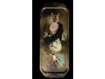 This quirky decorative tray can double as a statement piece in the living room or provide a perfect perch for your keys by the front door. The unusual imagery of a man confronting a mammoth bunny is part of the otherworldly aesthetic of Ibride's eye-catching and wondrous designs.