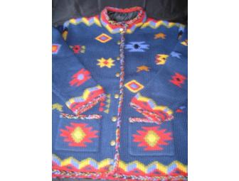 You are sure to keep warm in this beautiful 100% wool colorful cardigan from Coldwater Creek.  Size Large.