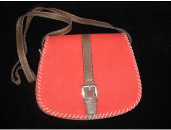 Coldwater Creek Denim Leather Flap Over Red Handbag