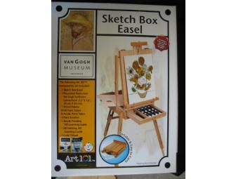 • Art 101 standing wooden sketch box easel (includes a 12x16" canvas with outline of Van Gogh's sunflowers, oil and acrylic paints, brushes, painting guide books, a color wheel and wooden palette)