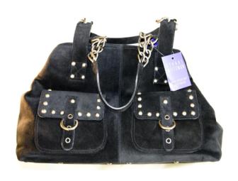 Basic black never looked so good! Beautiful black suede handbag with antique silver accents from Stuart Weitzman.
