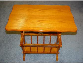Lightweight, but sturdy end table has a convenient magazine rack underneath.