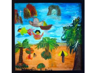 This picture is framed and was painted by Nguyen a 11 year old and Dinh a 12 years old orphans from a shelter in Cambodia.