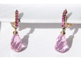 Sparkle with these Pink Sapphire and Pink Quartz Earrings set in 18 KT gold!