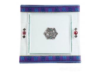 Support Israel and The Adelson Campus! Just in time for Pesach, this glass matzah plate has blue and purple accents with silver and red bead in-lays. A must have for your next Passover Seder. Made in Israel.