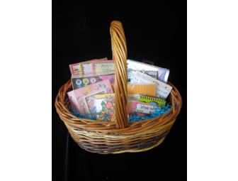 Get your kids writing, journaling and crafting with this basket of fun notepads, stamps and more. This offering includes: