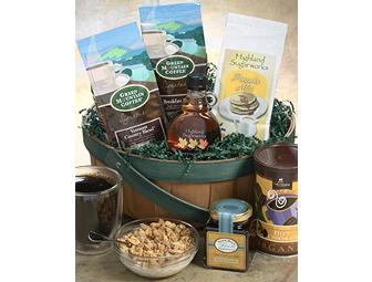 The Taste of Vermont Breakfast Gift brings the beauty of the Green Mountain State right to your doorstep. This special collection represents the best of Vermont's food artisans, including maple syrup from Highland Sugarworks; Raspberry Preserves from Side Hill Farm; a tin of Lake Champlain Fair Trade Organic Cocoa. Mitzi’s Maple Granola made out of Stowe, Vt. Our own Vermont Country Blend and Breakfast Blend coffees round out your tasty tour of Vermont.