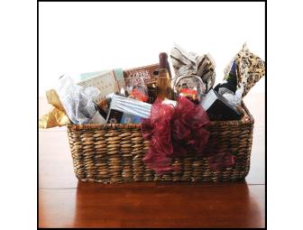 Treat yourself and your "other" to a weekend away - or stay at home! This basket contains 3 bottles of wine (2 bottles of Cakebread Cellars - Napa Chardonnay and Zinfandel - valued at over $45 a bottle), 2 wine glasses and chocolate for romantic evenings and coffee, 2 coffee cups and books for a relaxing afternoon together.