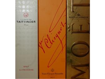 3 bottle of famous French champagne:Taitinger, Moet et Chandon & Veuve Cliquot