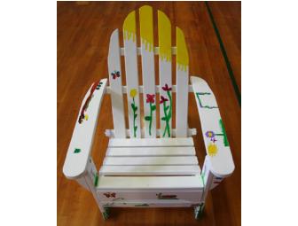 This "adult-sized" adirondack is ready for outdoor use - coated in a clear varnish.