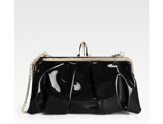 Brilliant framed clutch with soft pleats and signature Louboutin red lining.