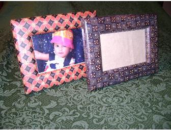 These beautiful batik on wood frames were designed by Anni Crofut and hand-made by Javanese artisans using the traditional batik process of waxing on the design and submerging the wood in multiple hot dye-baths, and ultimately boiling off the wax. The color is absorbed deeply into the pores of the wood so there will be no cracking or chipping of the product. The frames will hold 5" x 8" photos.