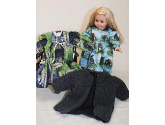 Dress your daughter or granddaughter's doll as a future Black Bear! Set includes a dress, fur coat and nightgown featuring a black bear print. Sized for an 18" doll, these items will fit the American Girl doll. Doll pictured with clothing not included.