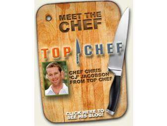 Catering for 12 at your home by Chris Jacobson, better known as “CJ” of Bravo’s hit show Top Chef was a private chef who has worked for the likes of author and columnist Arianna Huffington and others before his success on Bravo’s Top Chef.