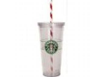 $15 Starbucks gift card, Venti candy cane, and a 24 oz cold tumbler.