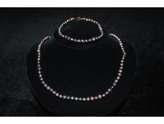 Dainty and classic. This black freshwater pearl necklace and earring set is demure, yet classy.