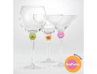 Add some cheer to your next gathering with hand painted wine glasses from HuePhoria! These unique glasses are sure to liven up any party with their fun ball designs! They work like a permanent wine charm so you'll always know which glass is yours.