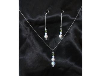 This set is handmade with Swarovski crystals, Czech glass, peridot, and freshwater pearls. Beautiful pastel colors.
