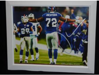 Giant fans remember Osi well for his contributions as definsive end during the Giants amazing run to the Super Bowl. Mr. Umeniyora has signed this photo.