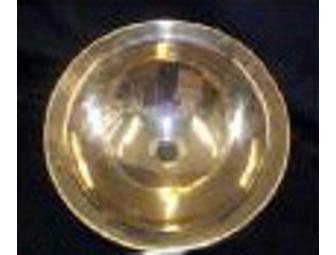 16" round white/bronze vessel sink. 7' tall. 1 3/4" flange.