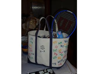 Class 5-2 has crafted a handy canvas tote, decorated with block letter initials of each student and monogrammed with the school initials. The bag is filled with sports equipment and includes four fabulous seats to a Yankees game!