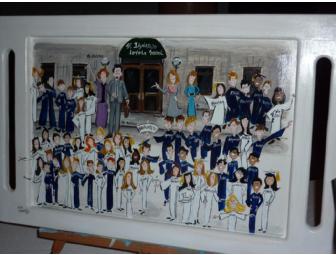 Classes 8-1 and 8-2: Famed nostalgia artist, Seton McGlennon, captures the essence of each student of 7-1, dressed in their graduation gowns, with their teacher and our beloved school, all in caricature form. This beautiful, useable hardwood tray (24” x 15”) will become a cherished heirloom in your family. Mc Glennon has been featured on Oprah’s Favorite Thing, People Magazine, Southern Living magazine, and twice commissioned by the White House.