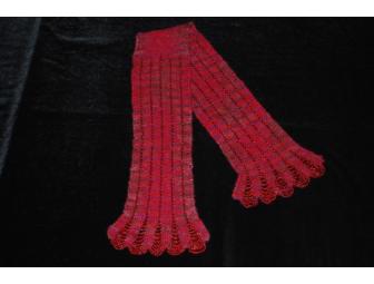 Skill, patience and expert craftsmanship are words that come to mind when viewing this beautiful handmade silk and wool scarf. Woven within the gorgeous burgundy silk and wool yarns are glass beads, each placed by hand within the knitted framework. This piece is more than a scarf - it is a beaded masterpiece to be worn as a piece of jewelry - and treasured forever.