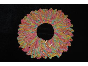 This fun handmade collar scarf will keep you warm and add a pop of color to your outfit. Fashioned after similar pieces featured at Anthropologie, this collared scarf is one of a kind - and will make you feel the same!