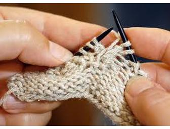 A one-hour private lesson for the novice knitter. Cast-on, knit, purl, yarn over, and decrease stitch skills will be taught. Lesson includes yarn, needles, and pattern for a simple and quick project. Some knitting experience is helpful but not necessary.