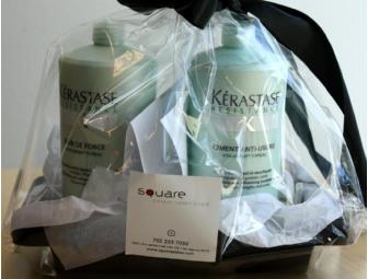 Basket includes Kerastase Products and a gift card for a haircut.