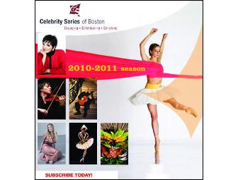You and a guest will choose seven (7) performances from the greatest variety of performing arts presentation in New England, with your 7-event Mix 'n Match subscription for two to the Celebrity Series of Boston's 2011-2012 season.