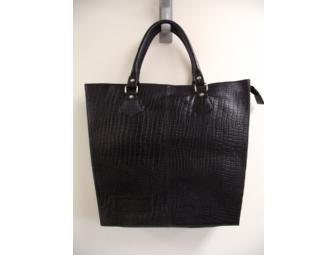 Texstyle/Jamie Stern leather embossed Crocodile Shopping Bag. Optional shoulder strap inside cell phone and organizational pockets. Measures 17.5"w at widest point x 15" high.
