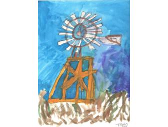 "West Texas Windmill" Watercolor by Thetis, a person with Alzheimer's Disease
