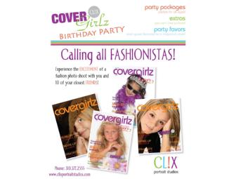 Clix Cover Girl Basic Party Package.  2 Hour Party for up to 10 girls. Includes Diva Photo Shoot, Magazine Cover, Mini Porfolio, 12x12 Photo, Invitations and Thank You Notes.