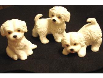 Three adorable Bichon or Maltese pups.