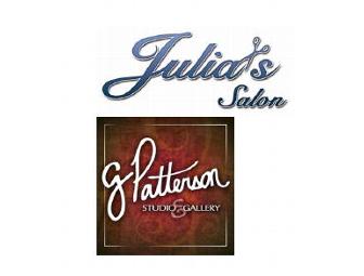 You will be Looking Good after one haircut and style by Julia's Salon (comes with flatiron). Afterwards, take your now unbelievably attractive self to G. Patterson Photography, where Greg will skillfully capture your stunning countenance with a self-esteem-building portrait session. Imagine your bliss when you receive an 11X14 portrait!