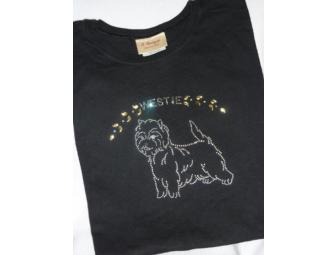 A must for the Westie fan, this 100% cotton shirt has metal toned applique of Westie Dog. Shirt is adult size large and is machine washable.