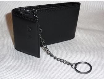Men's TUMI leather key fob with valet in black leather. Dimensions: 2.5" X 3.9".
