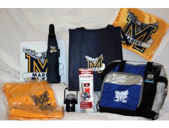 This Marist bag is filled with all the necessities for tailgating! Includes: Marist insulated bag, Marist cooler, 2 rain ponchos, Marist umbrella, fire extinguisher, mini-lantern, car magnet and car flag.